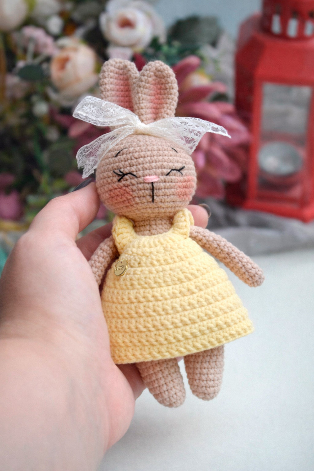 This handmade crochet bunny amigurumi in a soft pink dress is a cozy, high-quality toy and a heartfelt gift.