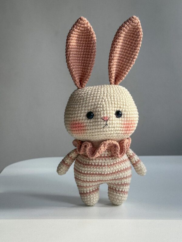 Each rabbit is crocheted by hand, making every toy truly unique. Small variations are a natural part of handmade work and give each piece its own personality.