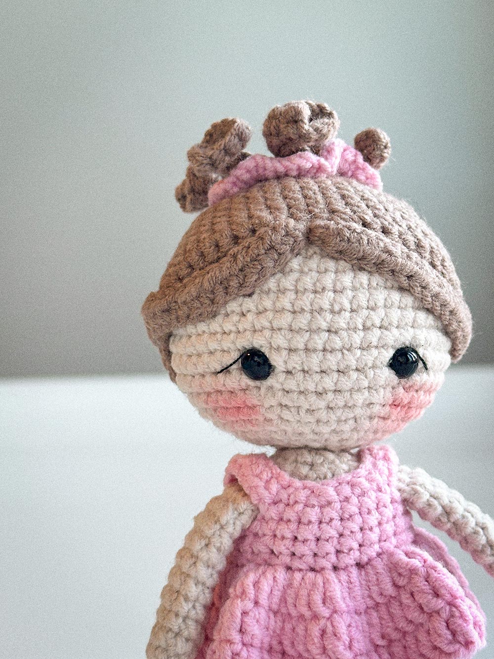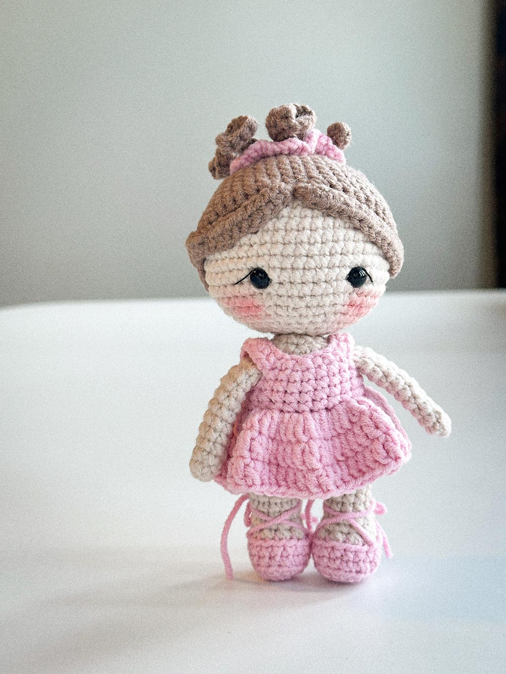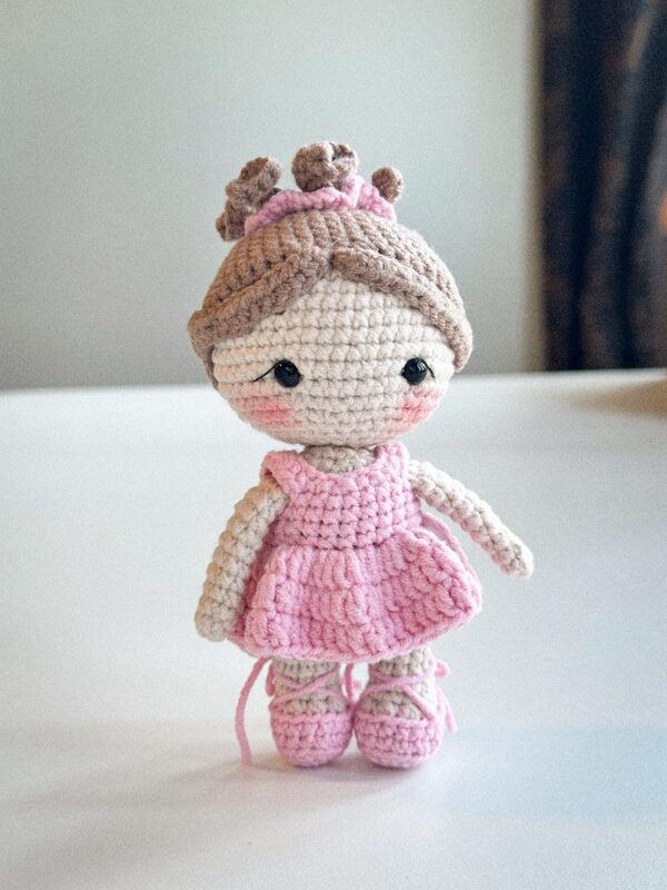 Luna the Little Ballerina is a handmade crochet amigurumi doll, thoughtfully crafted with attention to proportions, texture, and gentle facial details.