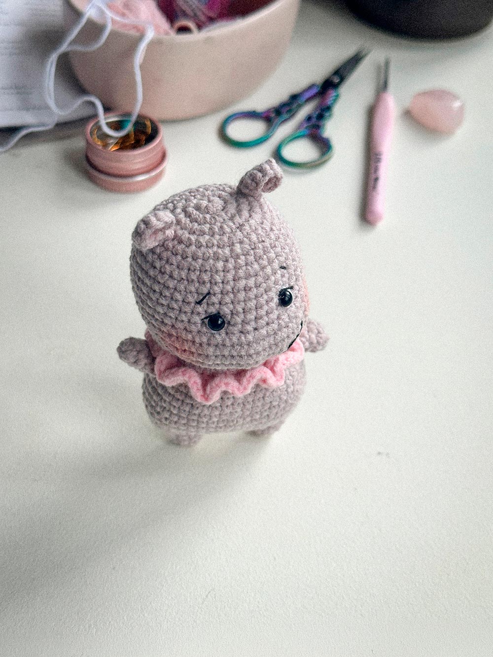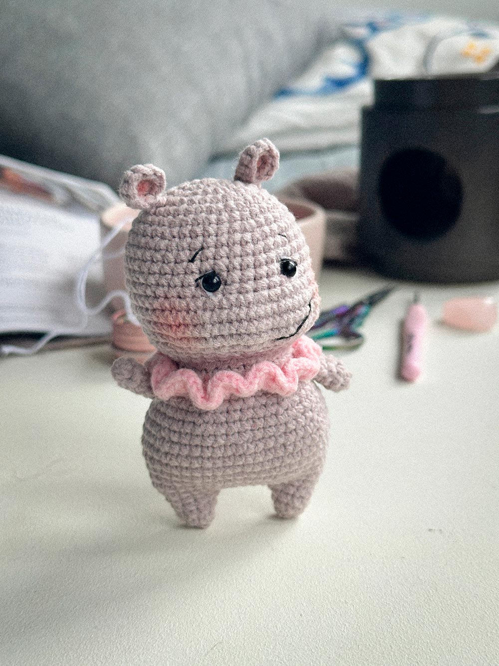 Each hippo is crocheted by hand. Small variations in stitching and shape are natural and make every piece unique.