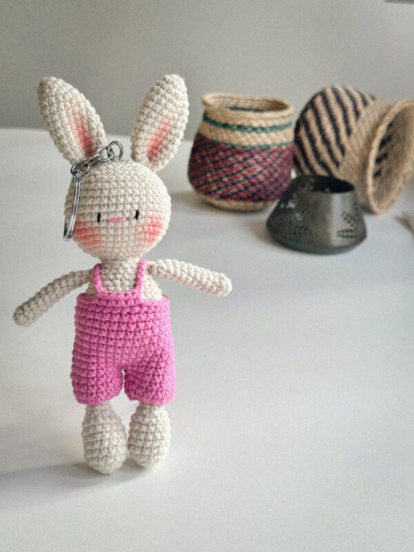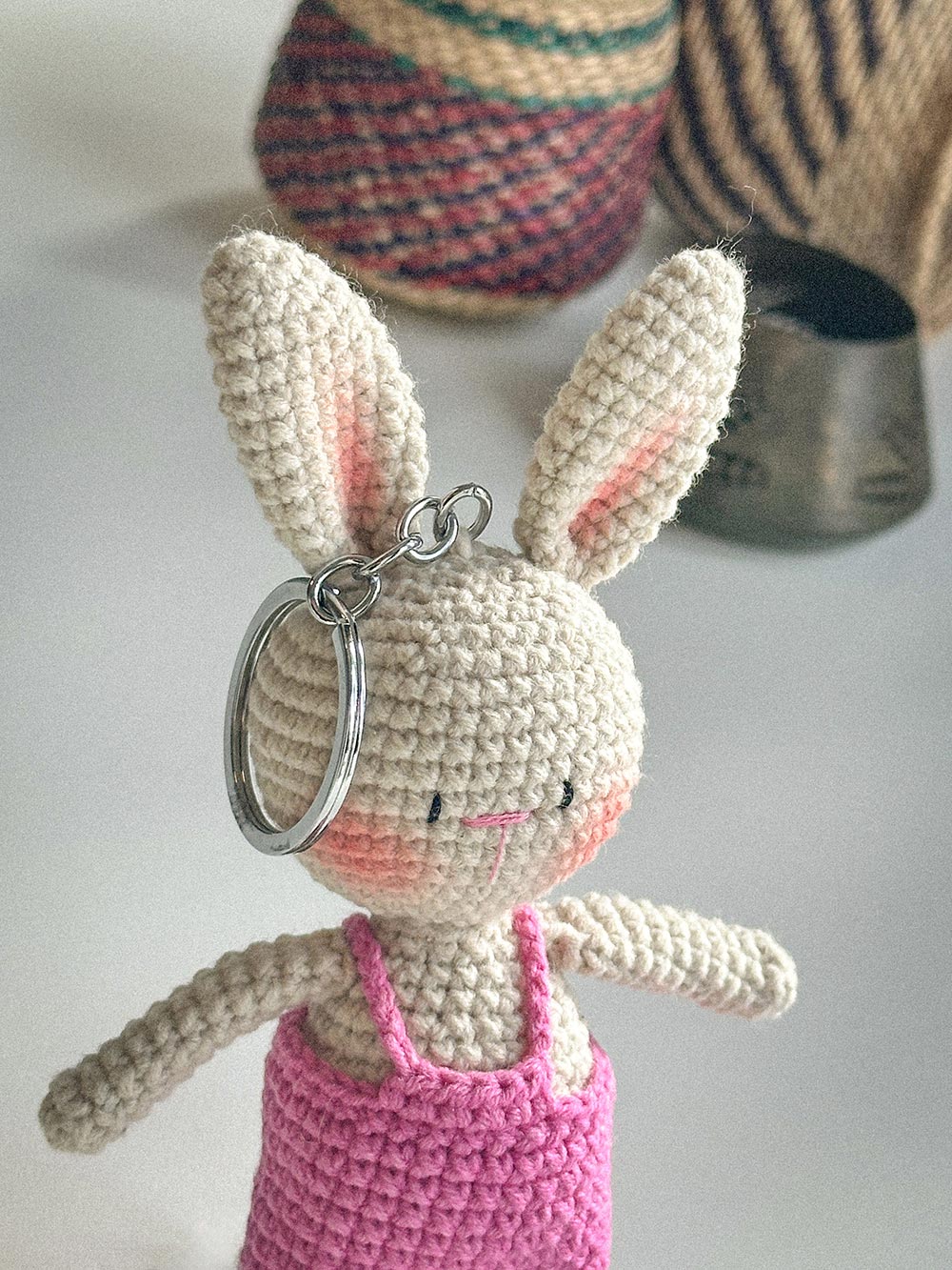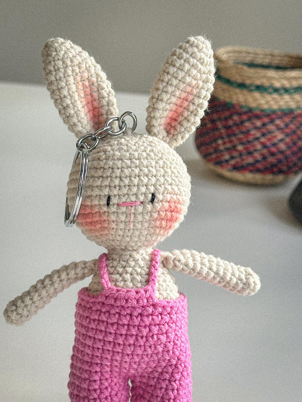 This handmade crochet bunny keychain is a cute and charming amigurumi accessory designed to add personality to your everyday essentials.